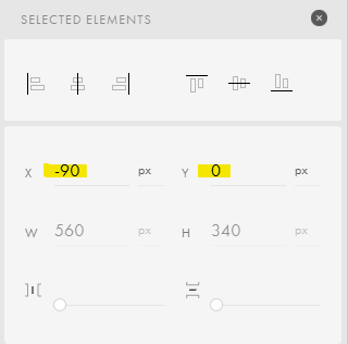 Устанавливаем значения положения по оси Y =40, по оси X + 600 к значению предыдушей карточки